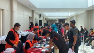 Peserta RS BHC Run 2026 muali mengambil race pack collection